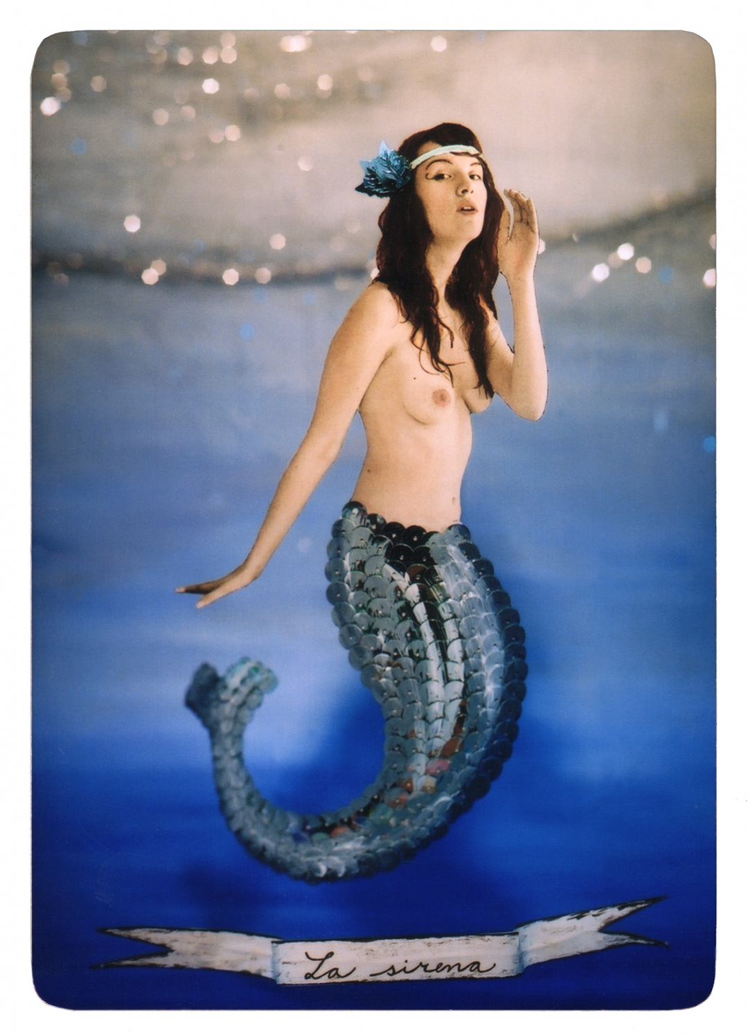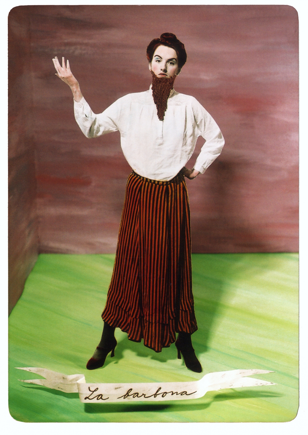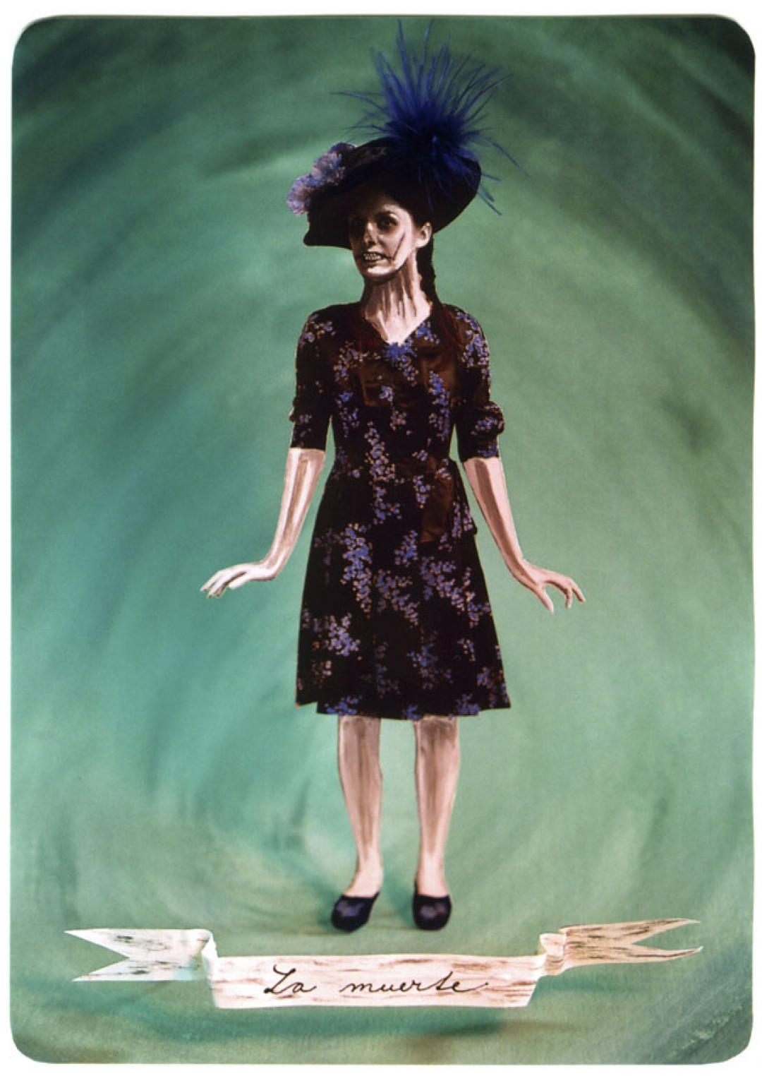 Mexican Lottery (2004) is a work inspired by the traditional Mexican lottery. The photographer took pictures of herself disguised as some of the lottery characters and manually altered them. She then put together small sets (lighting, backgrounds, posters, etc) and photographed them again. The final images are the result of this detailed process.