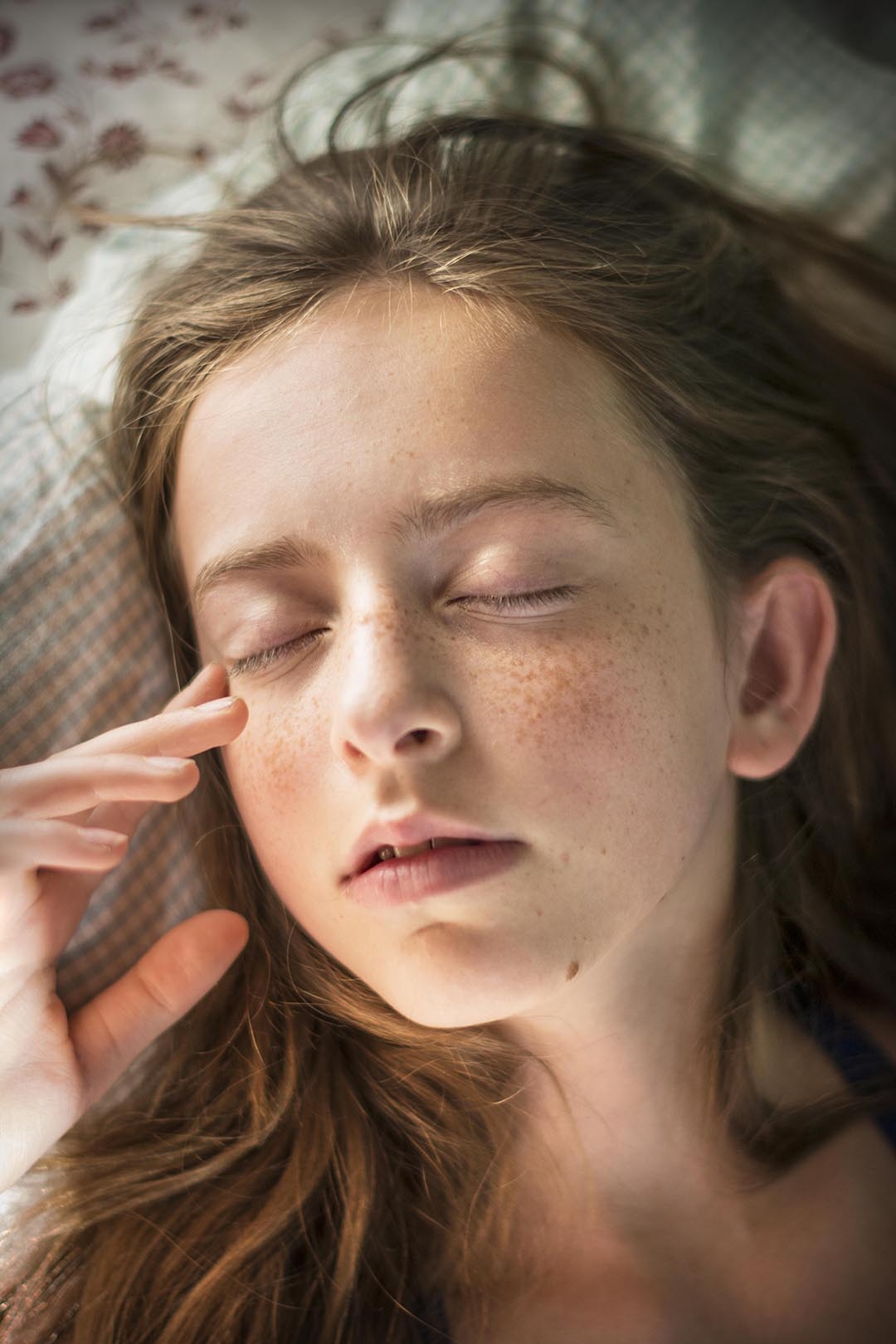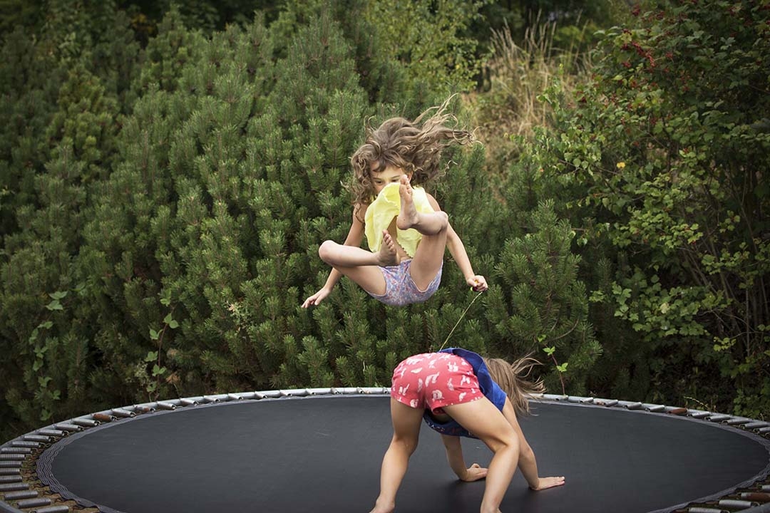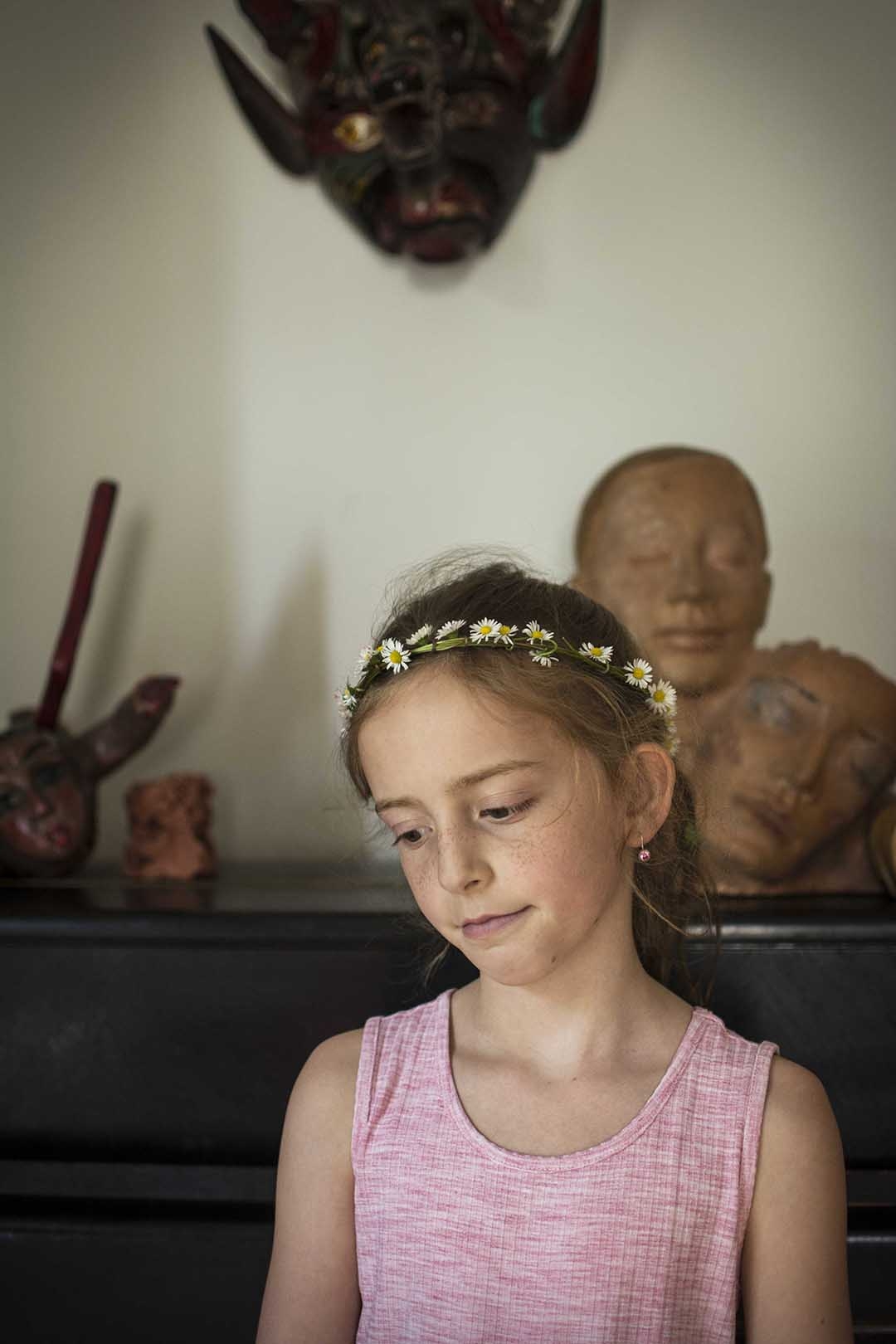 Once upon a time (2015 - 2022). In this work the author looks at childhood, focusing on the growth of her two daughters (Ema and Ludmila) over several years. Some elements of her artistic universe are still present: the use of costumes, staging, masked and performance games. In this case, and unlike her other projects, these elements occur more spontaneously and naturally. The photographer is a witness of these games and how children live the passing of the days in a sort of magical and continuous present.