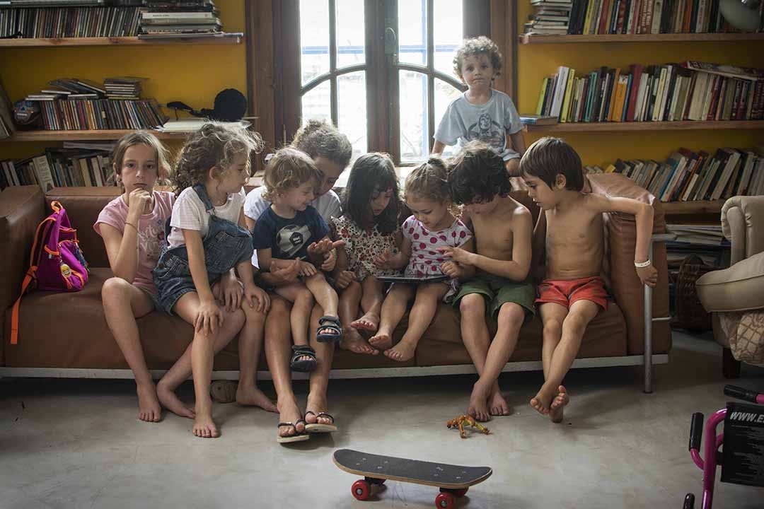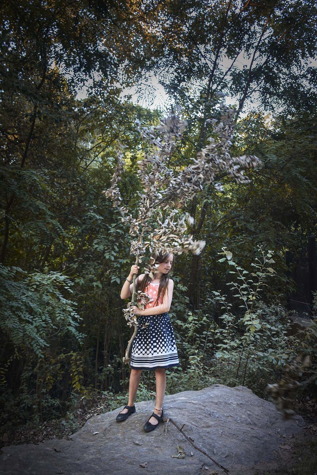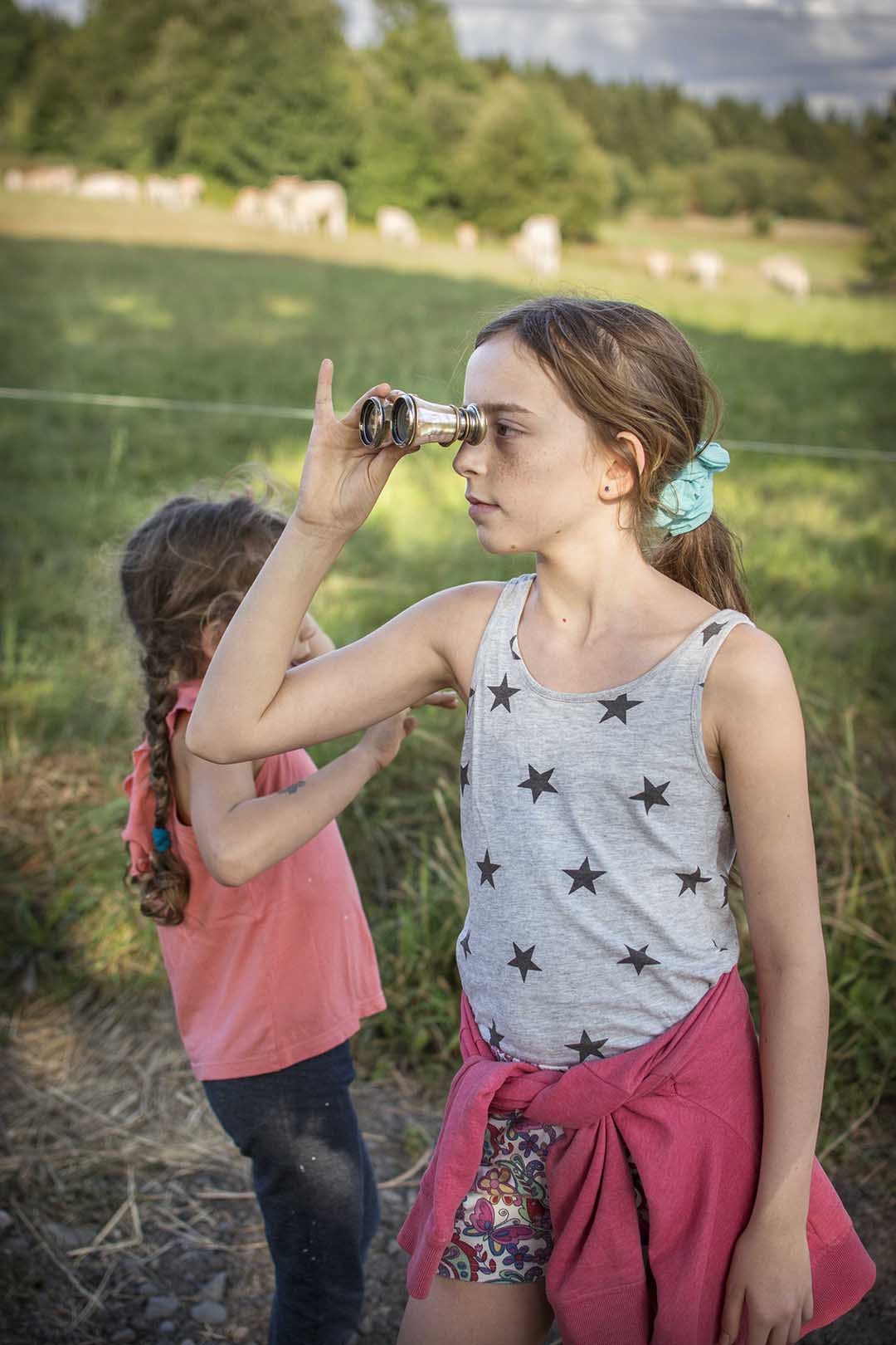Once upon a time (2015 - 2022). In this work the author looks at childhood, focusing on the growth of her two daughters (Ema and Ludmila) over several years. Some elements of her artistic universe are still present: the use of costumes, staging, masked and performance games. In this case, and unlike her other projects, these elements occur more spontaneously and naturally. The photographer is a witness of these games and how children live the passing of the days in a sort of magical and continuous present.